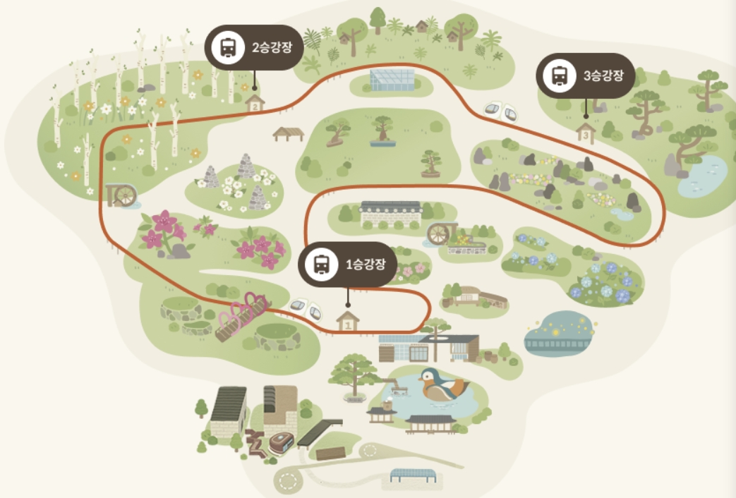 모노레일은 노약자의 편리하고 안전한 관람을 위해 화담숲 서쪽 이끼원 입구-화담숲 정상-분재원